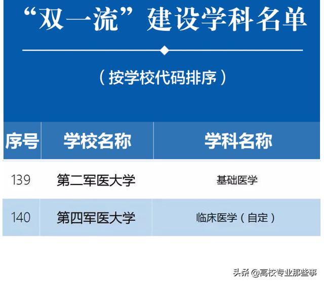 双一流建设比较有意思,第四军医大学的口腔医学是A+,本来可以直接作为双一流建设,但是却放弃了,自定了临床医学。