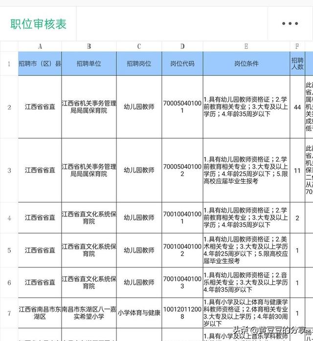 最后,公告下面会有江西教师招聘考试的附件,可以下载查阅《江西省2021年中小学教师招聘岗位信息表》,里面就有其所有招聘岗位代码,如下图所示??
