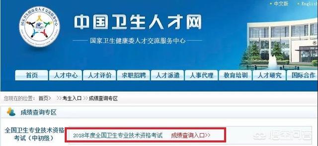 1、在中国卫生人才网点击“进入2018年度全国卫生专业技术资格考试 成绩查分入口”