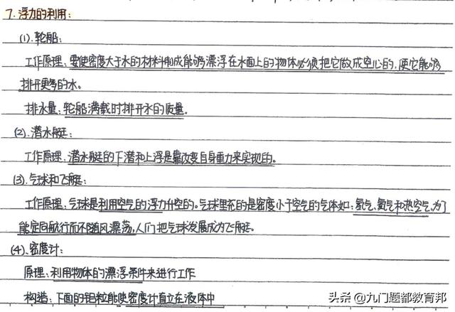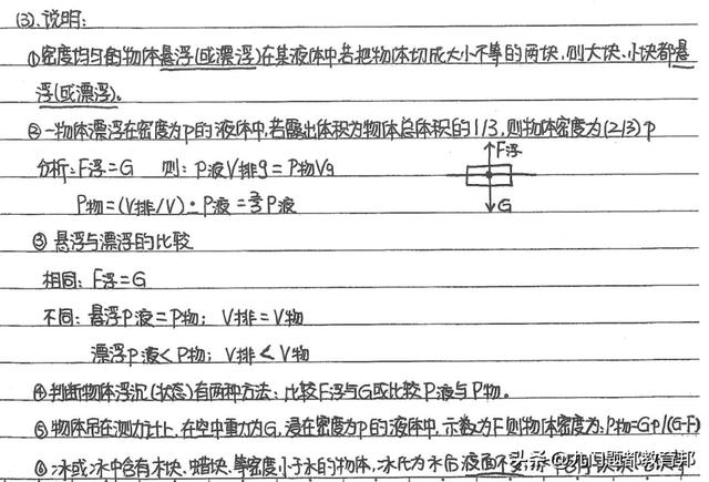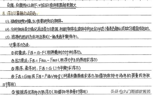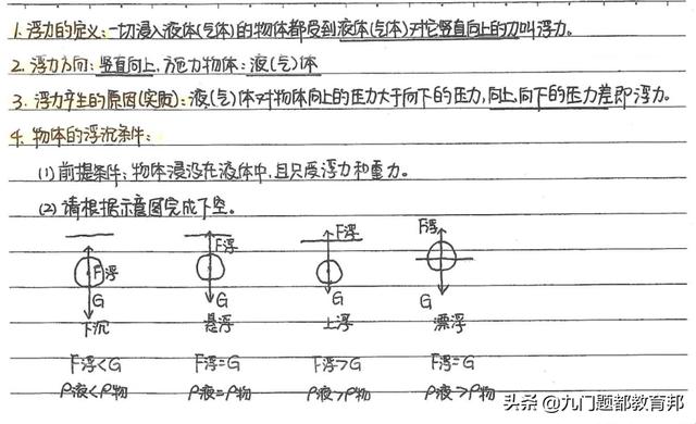 浮力这一部分是初中力学中比较难的一个知识,它综合了重力、压力、压强、二力平衡、质量、密度等知识,要想学好这一章节,光会公式是不行的,关键是要知道哪个公式在什么时候用,也就是要理解。