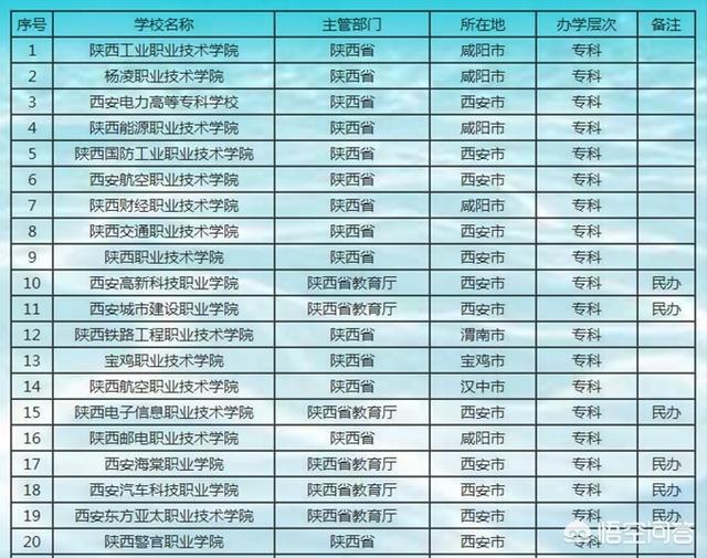 20,陕西航空职业技术学院以下是陕西专科院校名单,源自网络,供参考: