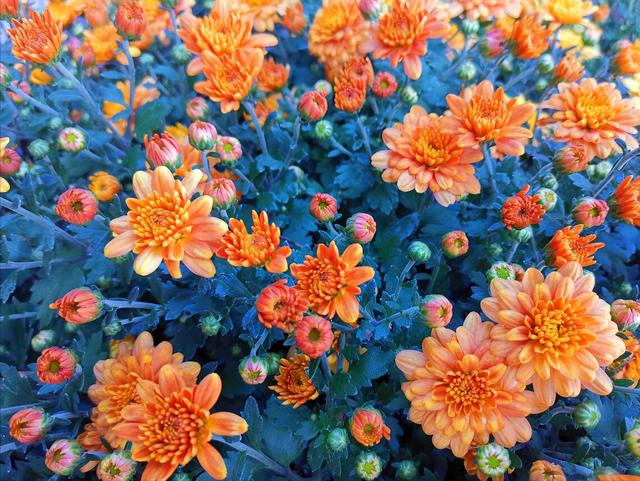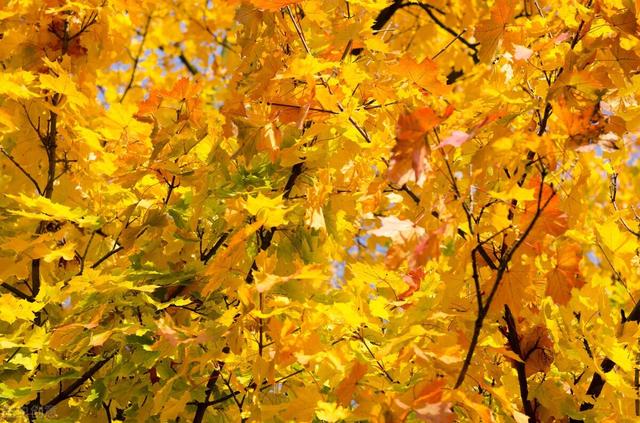 9、一树金花灿灿黄,东篱遍地满庭芳。秋分玉桂新妆换,锦翠丹霞映海棠。