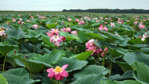 但是,虎林月牙湖5千亩浩大的荷花矩阵,以及它那湖花圆融、洒脱飘逸、野味十足、天然气概,始终透露着大东北的大天地、大阵势、大自然、大魅力!