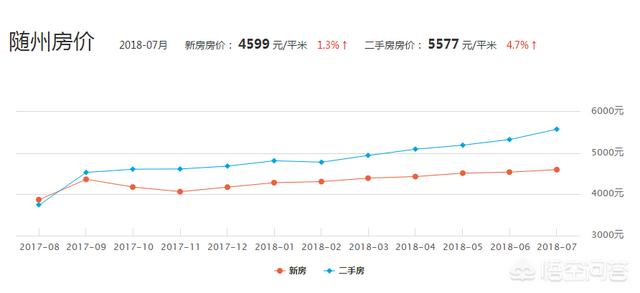 上图是某权威网站的数据,我们可以看到的是近一年来,随州的房价可谓是火箭般上涨。从3700左右的均价直接跳上5500左右的均价,涨幅高近50%,而且上涨势头并未减弱。