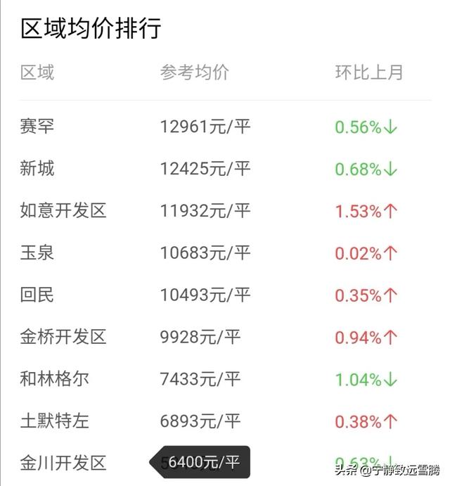呼和浩特市目前二手房成交均价11000元/平方米左右,各个区县单价差异较大,市辖区二手房成交均价在10000元/平方米以上,下面县市成交均价在6000-8000元/平方米左右。