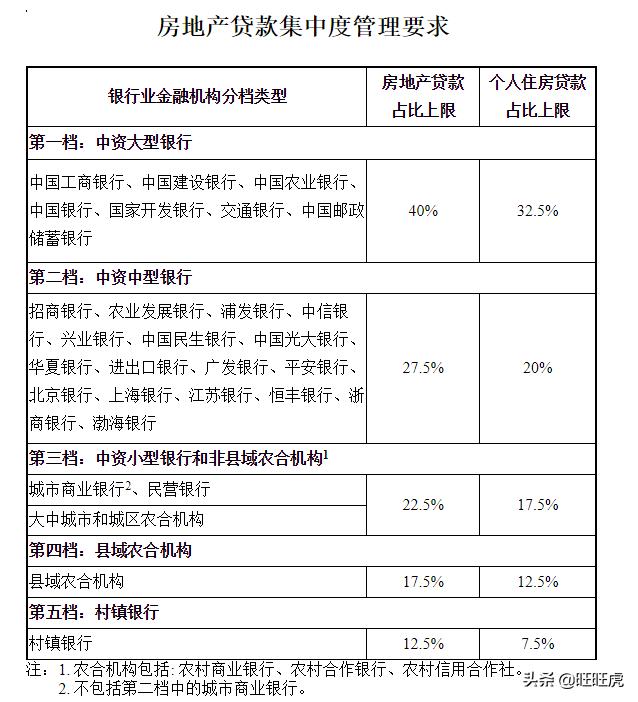 - 第一道红杠,是“房地产贷款占比”,是银行业金融机构房地产贷款余额占该机构人民币各项贷款余额的比例。