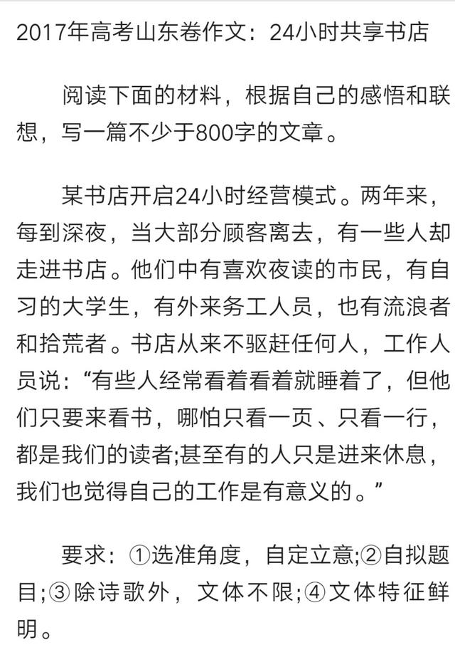 山东高考语文试题(2017山东高考语文作文题怎么出了两个版本)