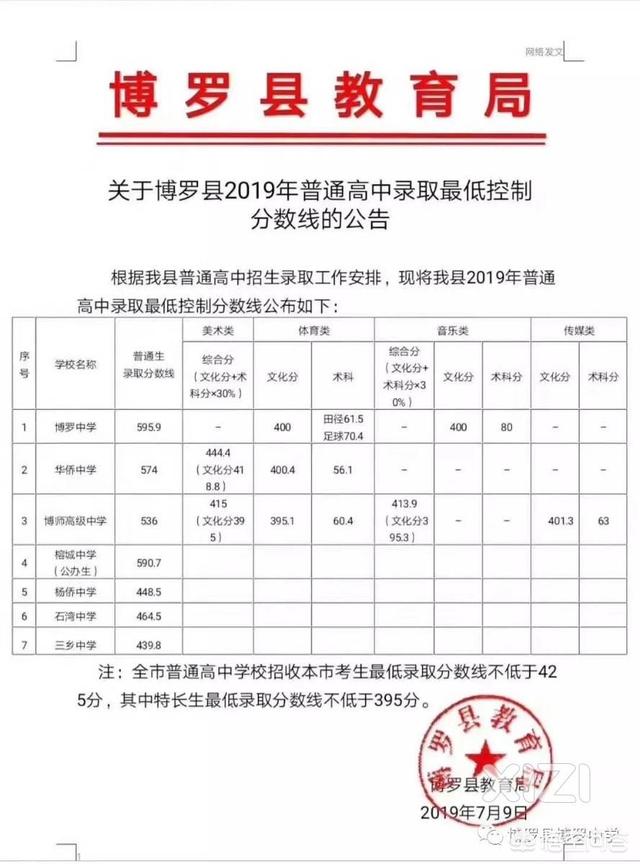 1.博罗中学今年招生1456人,其中100人面向惠州(博罗考生除外)招生。外县区高分考生没有填报博罗中学志愿(含博罗民办学校面向全市划线高分考生),依据招生规定,博罗中学不予录取。以下为录取分数线: