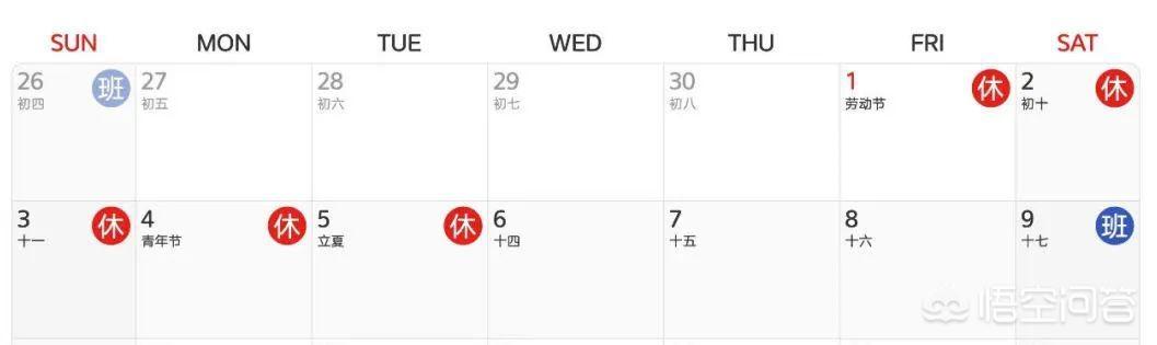 劳动节:5月1日至5日放假调休,共5天。4月26日(星期日)、5月9日(星期六)上班。