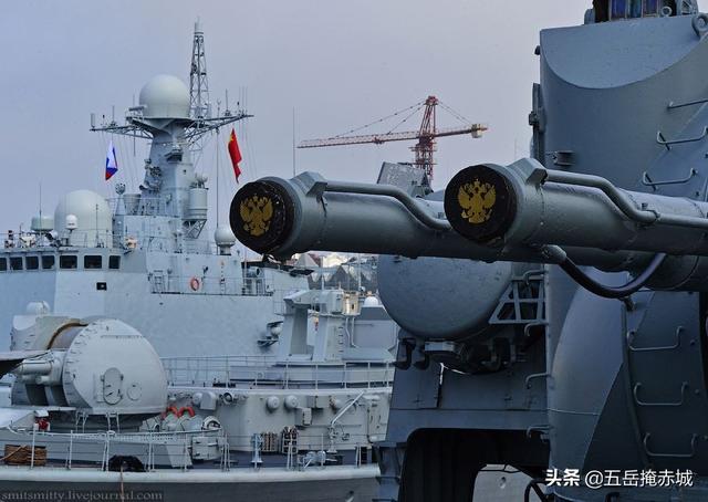 ▲▼同样的AK-130的炮口塞,图案从红五星变成双头鹰,标志着一个时代的终结