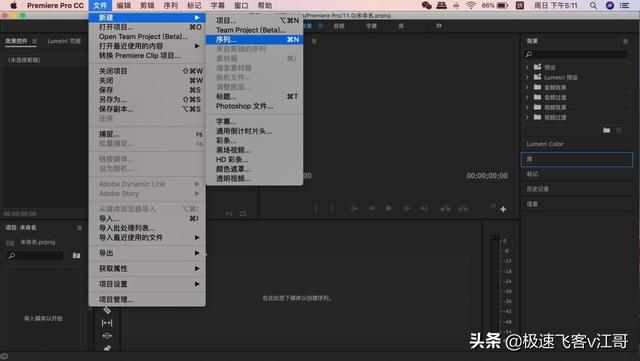 文件-新建-序列,设置我们想要的分辨率、帧率,点击确定。