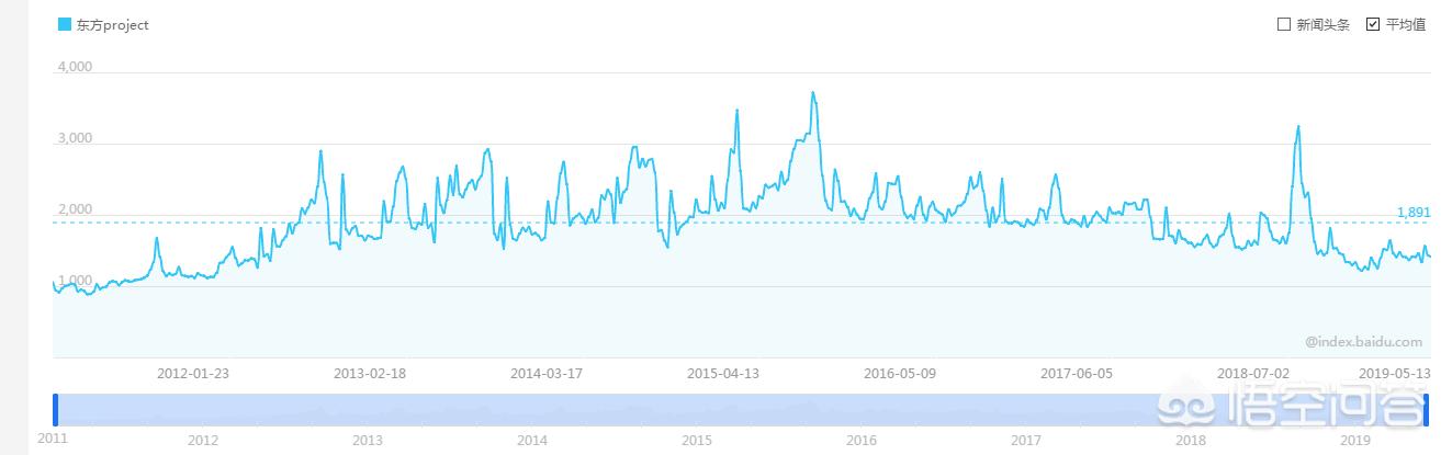 在看看国内的一些数据,以近几年东方project 关键词 的搜索指数作为对比,数据平均在2000左右浮动,也没有明显的变化,证明国内关注和搜索的人数也是保持在一定的范围内,所以也没有存在过气的问题,毕竟真的没有很高人气过。