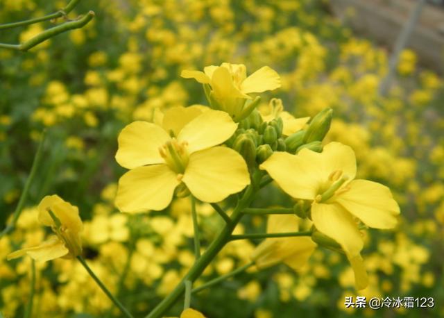 油菜花冬天种下油菜苗,春天开出金黄金黄的小花,密密麻麻层层叠叠,还散发着淡淡的清香。