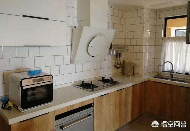 这是厨房位置,其实厨房的空间还是蛮大的,平时做饭可以说是非常方便的,而且使用空间灵活。厨房里根据户型的原始设计做出L型整体橱柜,这样实用性增加,同时考虑到厨房的窗户小,所以墙体使用了白色小砖,直接增加厨房里的亮度和时尚感,好漂亮!