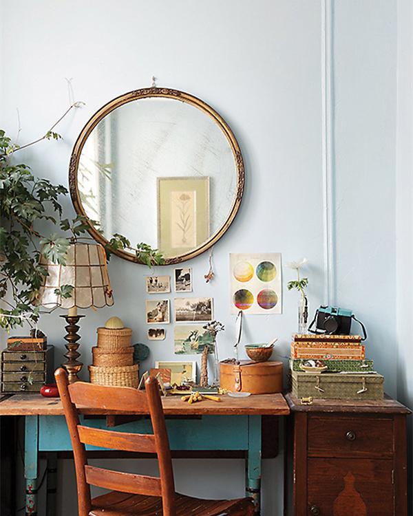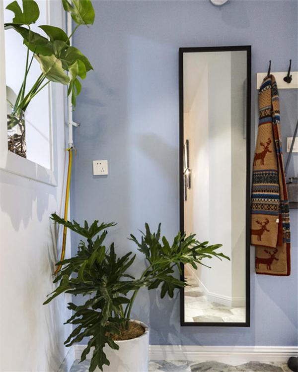 ▲ 浅蓝色墙面很好地和木艺装饰搭配起来