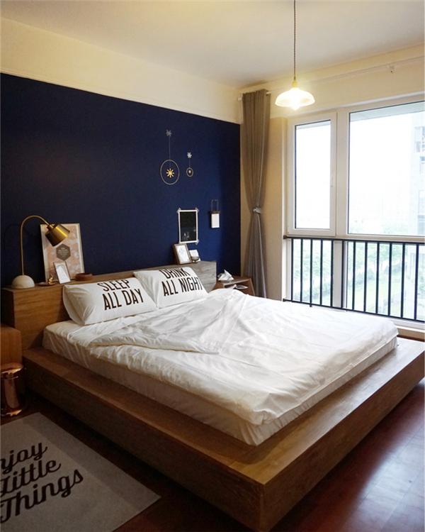 其一,某一面主要的墙使用你喜好的颜色,剩余的墙则依旧使用白墙。这样会让空间既有重点突出,又不会产生色彩面积过大导致视觉上的不适,简称“亮瞎你的双眸”。