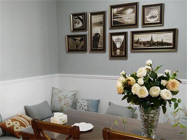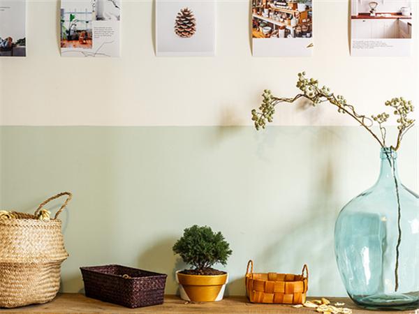 其二,就是在一面墙上想办法,彩色墙漆的面积大小只占墙面的1/2、1/3或是更小的比例,在绘画中可以称之为“破”,将某一块大区域分隔成两块,可以是不规则或是规则的两块。