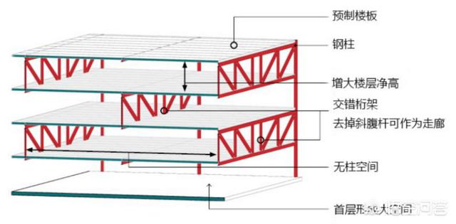是指以预制钢筋混凝土柱或钢柱、钢桁架、预制楼板等预制构件组成的大跨度空间结构,主体结构采用装配式交错桁架结构,配置外墙、内隔墙和楼盖系统的建筑。