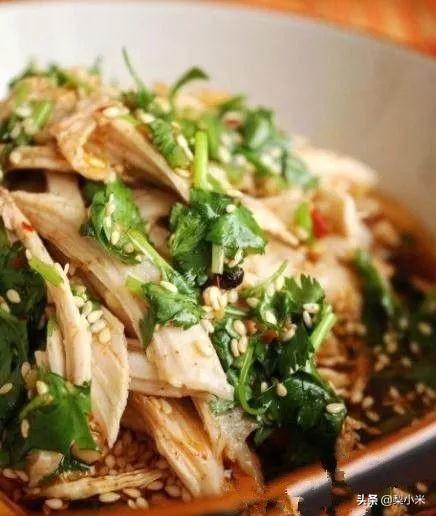 这是最简单最好吃的做法,只需要将生鸡腿煮熟,撕开成丝条状,将酱油,白醋,盐,白糖,油泼辣子,熟芝麻各1勺搅拌均匀起来,下油锅热一下淋在鸡丝上即可。