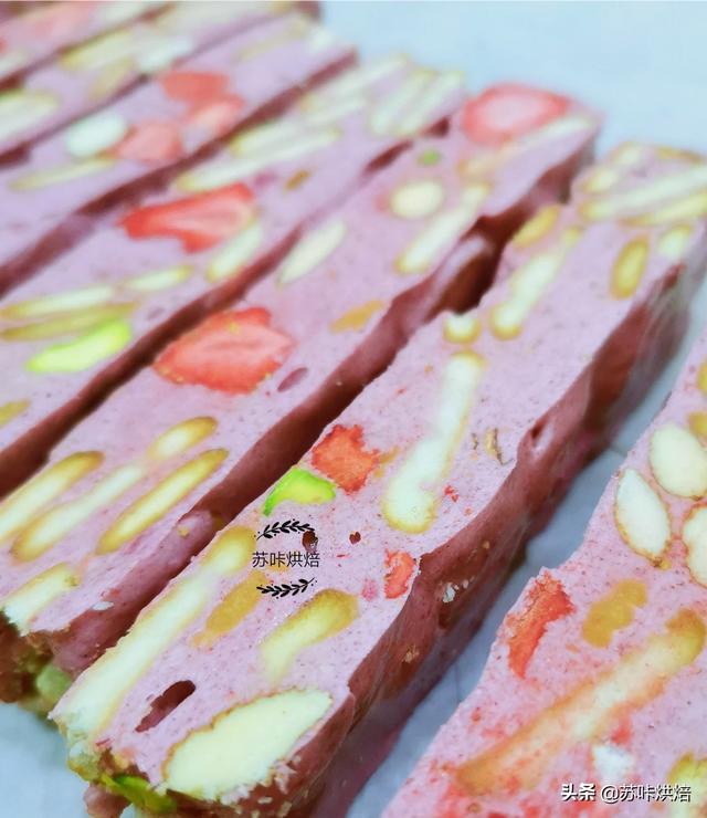 你好,很高兴能回答你的问题。其实,牛轧糖的做法有两种,而这两种做法需要的原料都不一样,棉花糖版的需要准备棉花糖、黄油、奶粉、坚果、蔓越莓就可以了。熬糖版,需要准备鸡蛋、水怡或麦芽糖、海藻糖、白砂糖、奶粉、黄油、坚果。另外需要准备一个熬糖温度计。棉花糖版本做起来难度较低,成功率很高,很快手,但口感没有熬糖版的好吃。下面分别介绍下棉花糖版本和熬糖版本的做法。