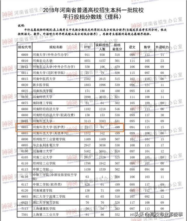 河南科技大学的护理,分数449,一本线。