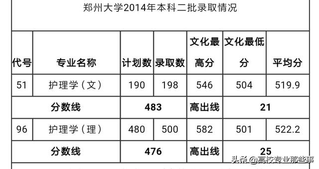 2014是郑州大学最后一年招二批本科,当年护理文理兼收,2015年,将护理也纳入一本招生。
