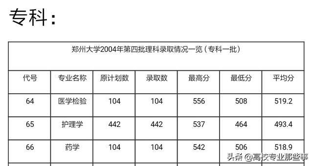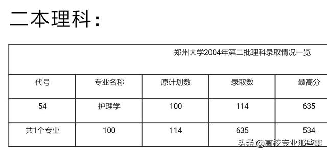2004年,郑州大学的护理分为本科,专科招生,其中护理本科在二批招,专科在专科批招生。