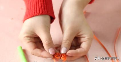 2.下面换一个颜色,将衍纸卷到底部变成球充当“花蕊”,并将衍纸尾部粘好防止散开。