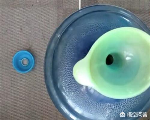 1、找来一个漏斗,将漏斗插进纯净水桶中。