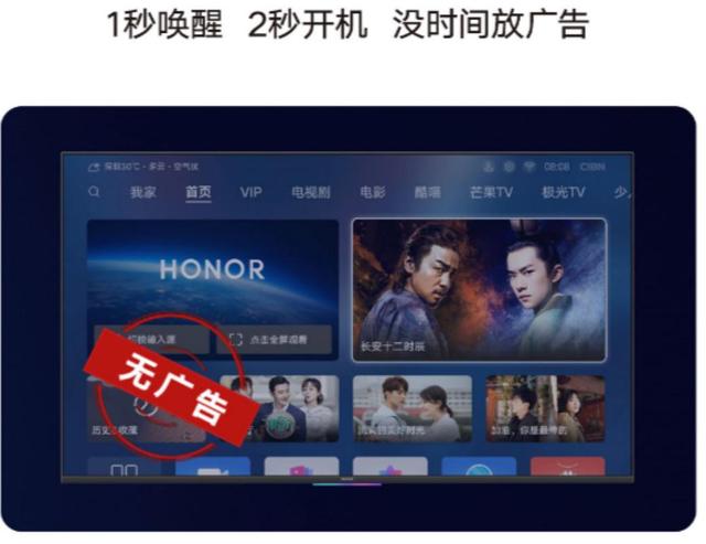 此外,荣耀智慧屏还搭载了鸿鹄818智慧芯片,四核CPU+四核GPU,旗舰手机级的wifi芯片。8K@30fps/4K@120fps的视频解码能力和6400万像素图像解码能力使得智慧屏在色彩饱和度高的同时还能够做到通透自然。另外,智慧屏的音质表现也是相当震撼,超强立体声播放效果搭配高清画质,在家也能拥有影院同款视听效果。有赖于鸿鹄818智慧芯片超强的运算解码能力,智慧屏能够做到秒开秒关,根本没时间播放广告,这也成为了智慧屏的又一大亮点。