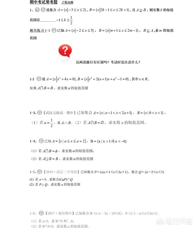这里面就涉及到一元二次不等式,空集等知识点,就需要学生注意一些常考题型 (可以参考下图)
