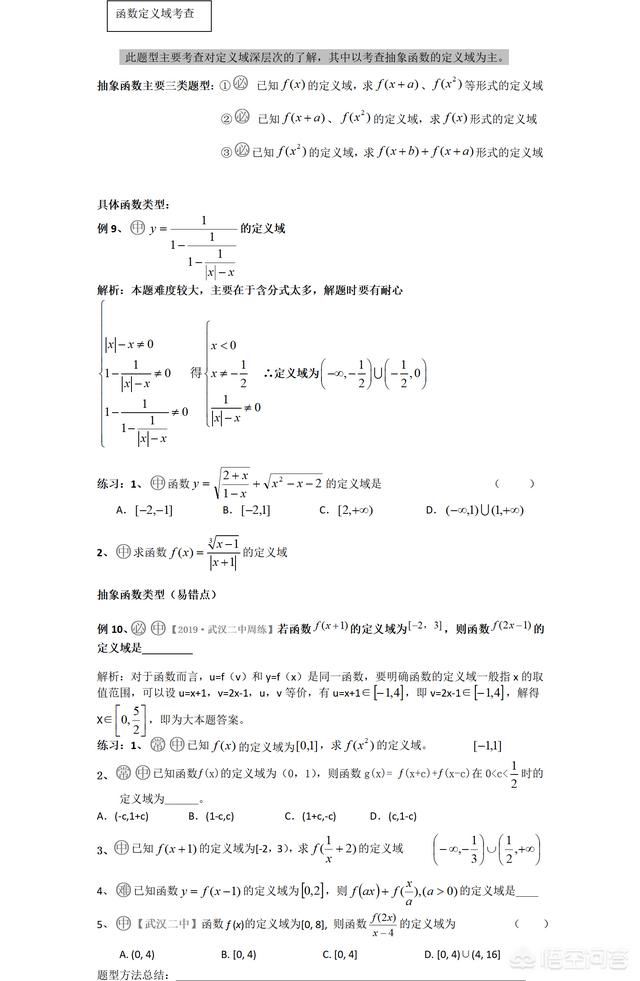 至于函数三要素,期中最重要的当属定义域及是否为同一函数的题目