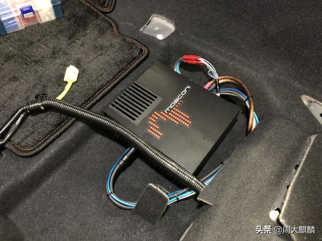 这个GLADEN超低音就是固定在车尾后备箱侧面的,也是用意大利舞仕刚柔mosconi PRO系列功放去推动的