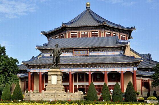 第一,中山纪念堂。是由伟大的革命先行者孙中山先生而筹资兴建的纪念性建筑物。中山纪念堂座落在广州越秀山南麓。广州中山纪念堂1928年动工,1929年奠基,1931年落成,总占地面积6.2万平方米,大堂外高52米,主体建筑总占地面积(包括大堂四周平台)1.2万平方米,是当时亚洲最大的会堂式建筑和目前全球最大的孙中山纪念堂。