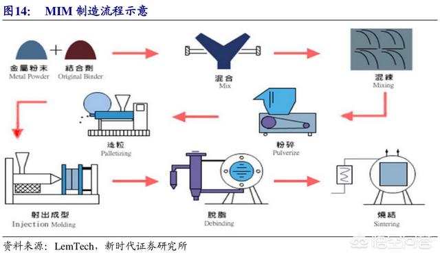金属注射成型(Metal injection Molding,简称MIM)是与3D打印并称的粉末冶金制品制作最具有潜力的新兴方向之一。MIM是结合了PM与塑料注射成型两大技术优点的先进成形技术,突破了金属粉末模压成形工艺在产品形状上的限制,同时利用塑料注射成型技术能大批量、高效率地生产具有高复杂度、高精度、高强度、外观精美、微小型规格的精密结构零部件。