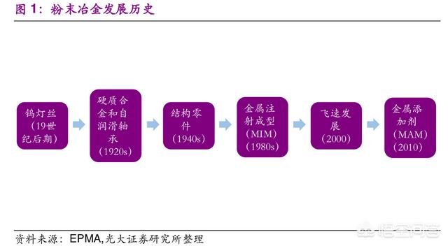 20世纪中叶以后,粉末冶金技术与化工、材料、机械等学科互相渗透,更高性能的新材料、新工艺发展进一步促进粉末冶金发展,20世纪80年代金属注射成型(MIM)技术开始应用。