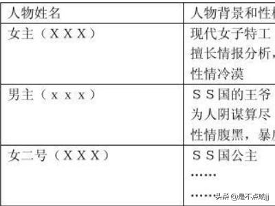 3.人物设定是指人物的身份地位、性格爱好、外貌特征、人物关系等。当然一般写新文的时候,估计作者都还不知道最终会出现多少个人物,但是主角和重要配角的设定是应该要有的。