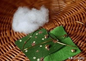 1、准备2块花布(8cm*7cm)、小铃铛4颗、金色细丝线、棉花、针线 。