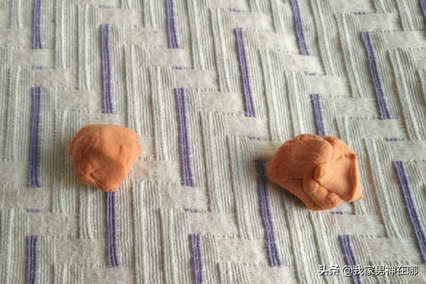 2、取两团棕色粘土,捏成汉堡包的上下两层。