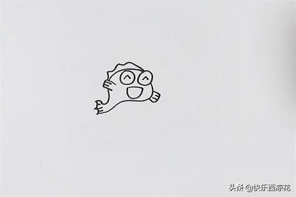 1、首先我们在左边画出一条鱼的身体轮廓,眼睛很大,嘴巴张开笑的很开心。