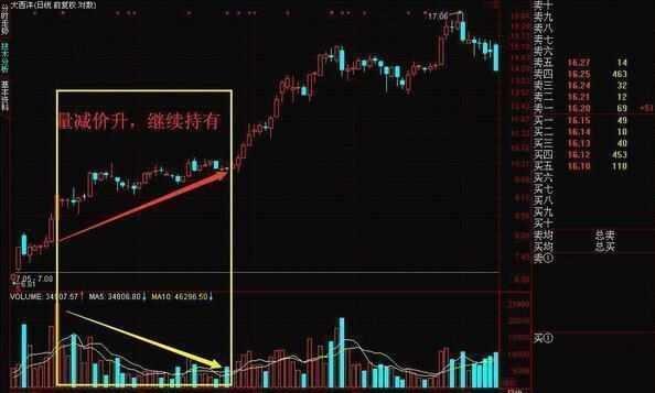 成交量减少,股价仍在继续上升,适宜继续持股,即使如果锁筹现象较好,也只能是小资金短线参与,因为股价已经有了相当的涨幅,接近上涨末期了。股神之路网站提示:有时在上涨初期也会出现“量减价升”,则可能是昙花一现,但经过补量后仍有上行空间。