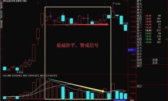 成交量显著减少,股价经过长期大幅上涨之后,进行横向整理不在上升,此为警戒出货的信号。此阶段如果突发巨量天量拉出大阳大阴线,无论有无利好利空消息,均应果断派发。