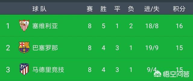 激战8场,卫冕冠军巴萨仅取得了4胜3平1负的战绩,排名积分榜第二位,已经是四轮联赛不胜,球队状态低迷。而塞维利亚则打出一波4连胜,以5胜1平2负的战绩,超越巴萨、马竞和皇马,坐上了联赛的“头把交椅”!