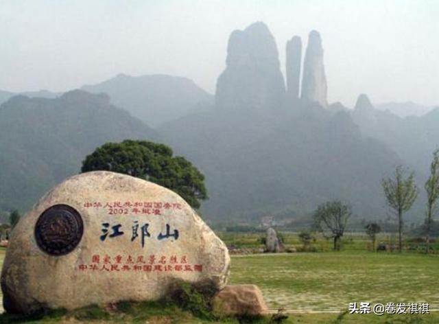 9、江郎山。古称:玉郎山、金纯山;位于浙江省衢州市江山市石门镇境内。2010年8月作为“中国丹霞”的系列提名地之一列入世界自然遗产名录。