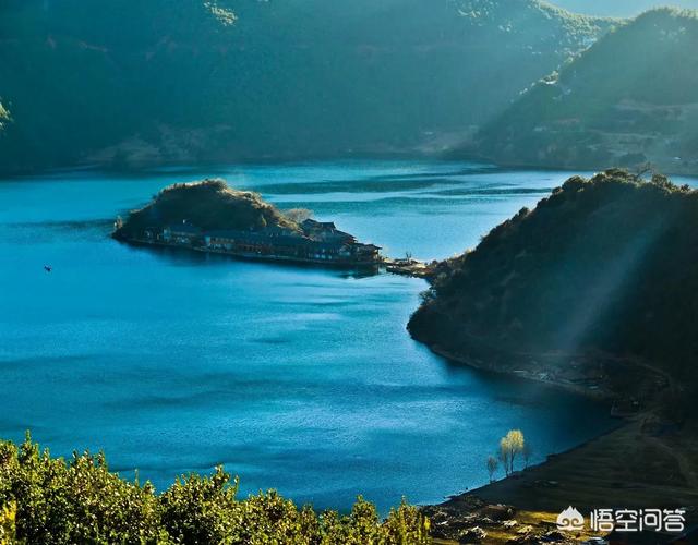出景区顺时针环湖自驾,会经过宁蒗等很有民族特色建筑的地方,也有很多的网红打卡拍照点。路过观景台,遥望里格半岛,有光线从山顶撒下,岛上炊烟袅袅,犹如仙境。