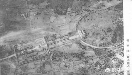 1937年南京保卫战打响之前,中国守军在明孝陵的陵宫内修建了防御工事,也就是老照片上那道深深的土沟。从日军明信片上看,这条壕沟一直挖到享殿的院落外面。日军明信片反映的是南京保卫战激烈交火后的战场痕迹,所以虽然航拍的是明孝陵,但注释写成了“战壕”、“堑壕”。