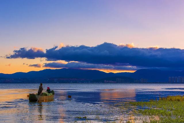 洱海最美的时候,是夕阳快要落山时,浪花滚滚,每一个都金灿灿的。夕阳照在湖面上,像小女孩脸上微微的红晕,这时的洱海显得无比的温柔和美丽。夜晚,在月光的照耀下,苍山洱海互相映衬,好像一幅美丽的画卷……
