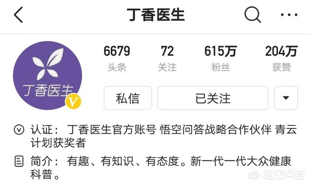 丁香医生不是指某个具体医生,只是丁香园旗下的一个账号而已,有千万粉丝不足为奇!