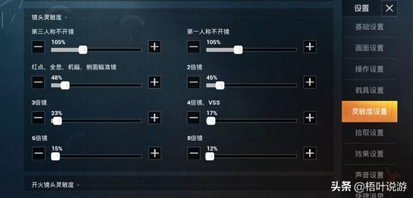 指的是开镜后的灵敏度,灵敏度越大,镜头移动速度越快。灵敏度越小,镜头越稳定。