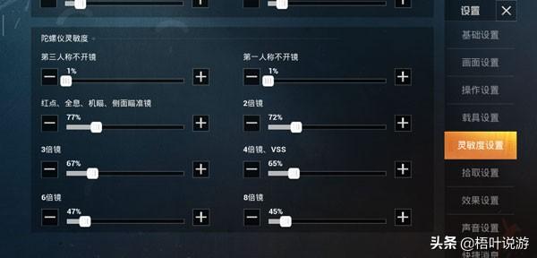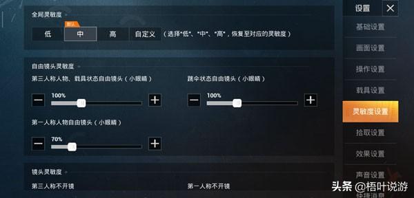 系统推荐【中级】灵敏度,(选择低、中、高,恢复至对应的灵敏度)